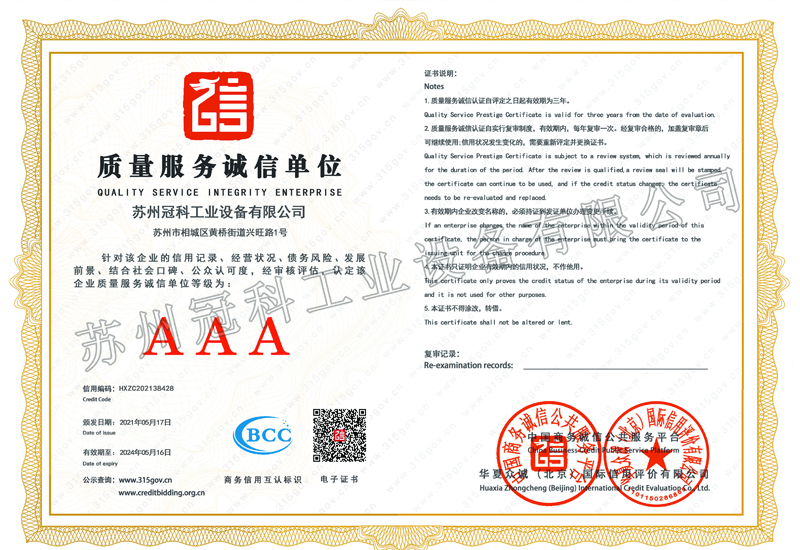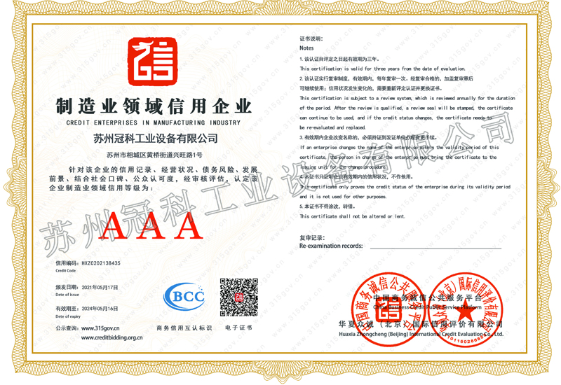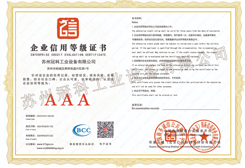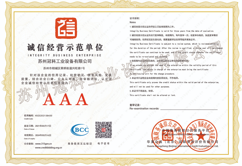 企業(yè)信用評(píng)價(jià)AAA級(jí)信用…