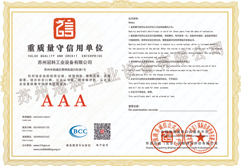 重質(zhì)量守信用單位